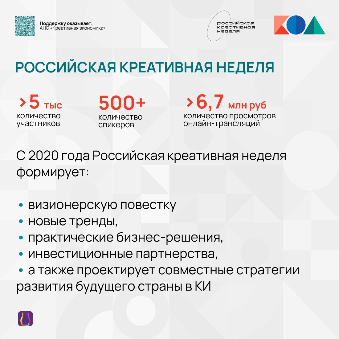 Более 5 тысяч участников, 500+ спикеров, почти 7 млн просмотров онлайн-трансляций. - Российская национальная премия в сфере креативных индустрий:
